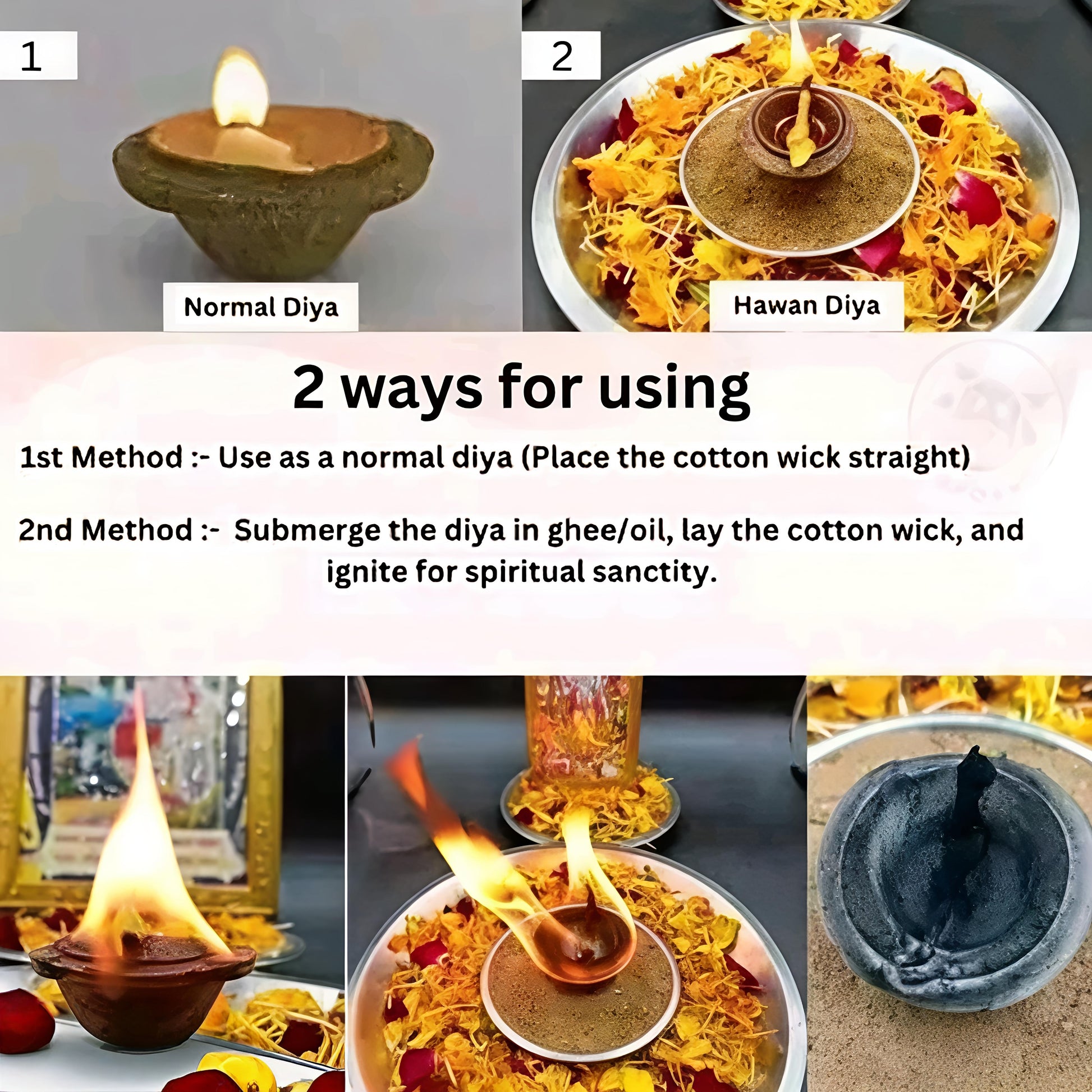 Pure and Natural : The Panchagavya Diyas create a pure, nutritional, and medicinal atmosphere. They produce beneficial gases that generate positive energy, promote good health and wealth, and effectively combat contamination.